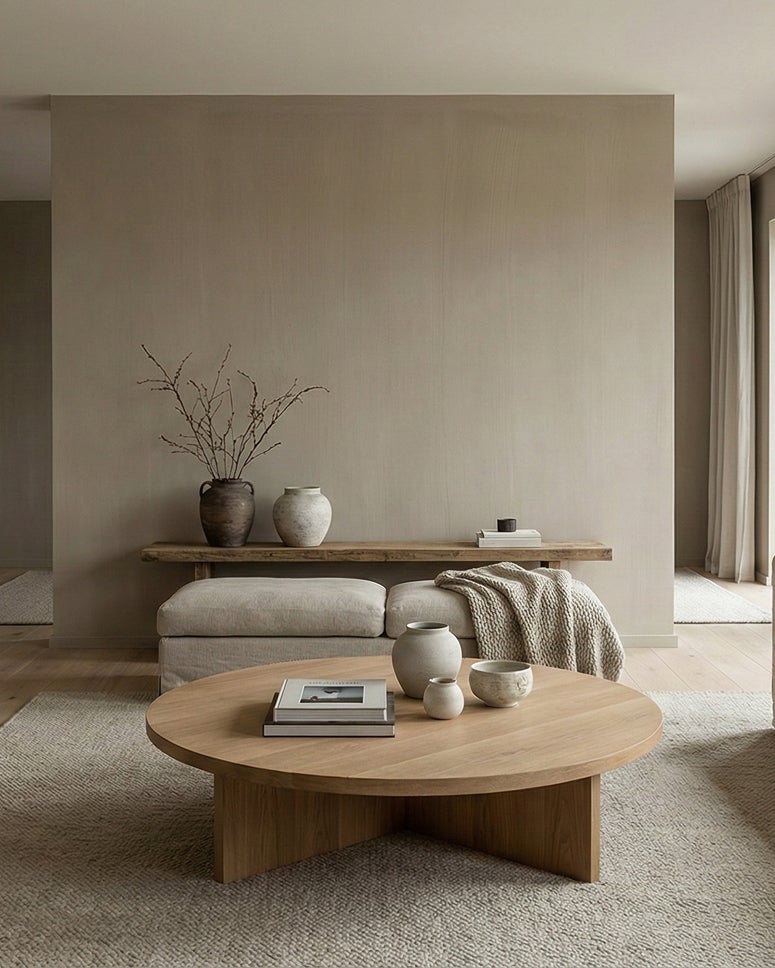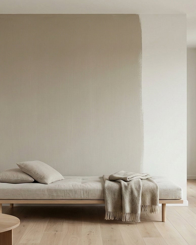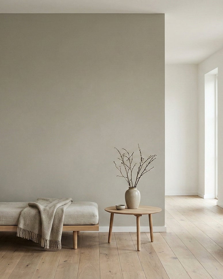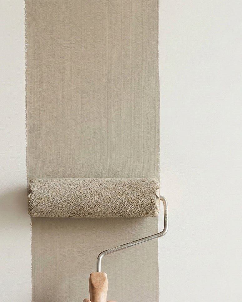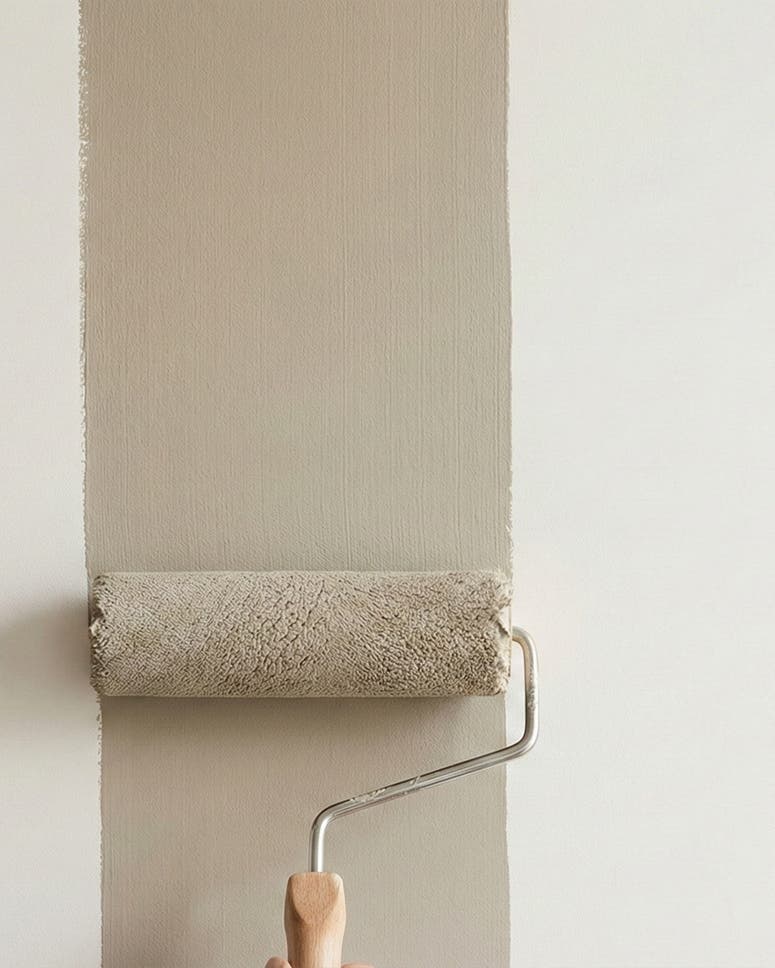 En mjuk greige ton med varm grå underton som skapar en lugn och balanserad grund i rummet och låter material och möbler komma till sin rätt.