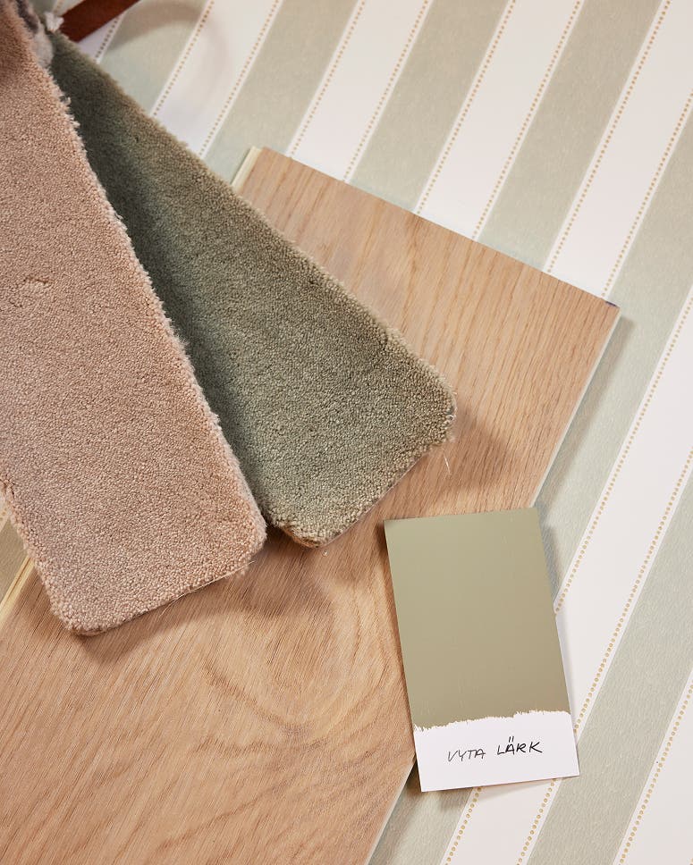 En varm grågrön ton med tydlig koppling till trä och natur. Lärk är lätt att kombinera och fungerar som en stabil bas i både moderna och mer traditionella miljöer. Ger en ombonad känsla och samtidigt en varm krispighet. Tillsammans med snickerier målade i Nordsjö Ambiance Superfinish Matt får rummet en mjuk och sammanhållen helhet där detaljer som lister, dörrar och paneler framträder vackert.