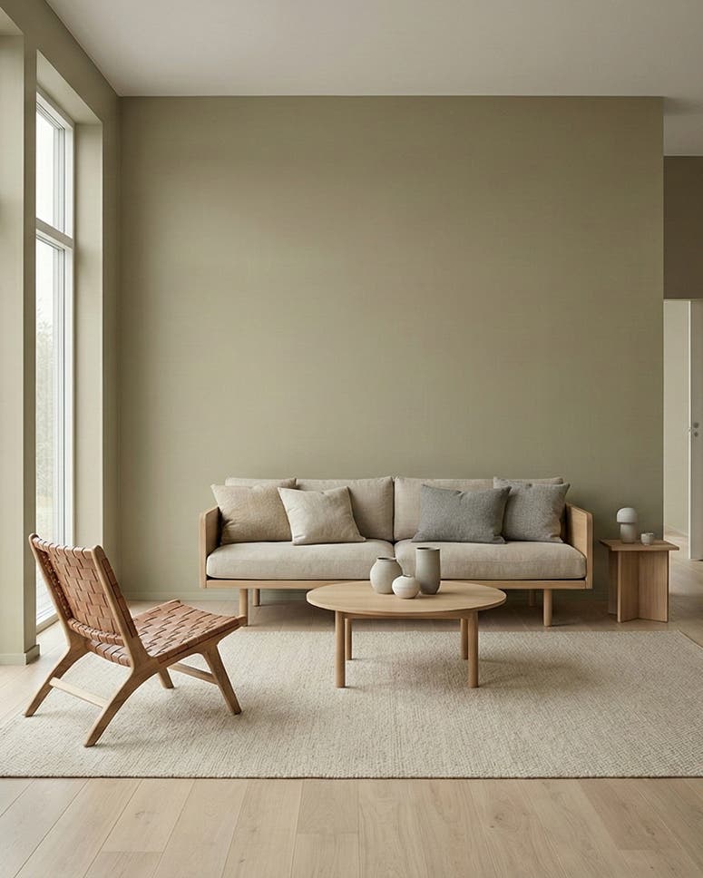 En varm grågrön kulör som skapar ett lugnt och naturligt uttryck i rummet. Lärk balanserar mellan grått och grönt och ger en mjuk, harmonisk bas som passar fint tillsammans med trä, textilier och andra naturmaterial.