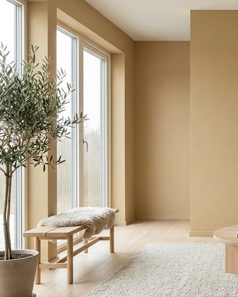 En varm ockragul kulör som ger rummet energi och ett mjukt gyllene uttryck. Svavelticka skapar en ombonad känsla och fungerar fint tillsammans med naturliga material och varma toner.