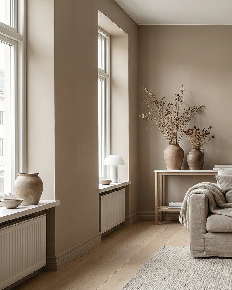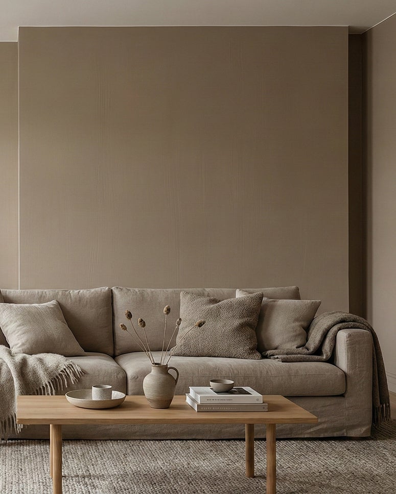 En varm och jordnära kulör som ger rummet ett mjukt och harmoniskt uttryck. Trollslända skapar en lugn bas i inredningen och fungerar fint tillsammans med naturliga material och ljusa toner.