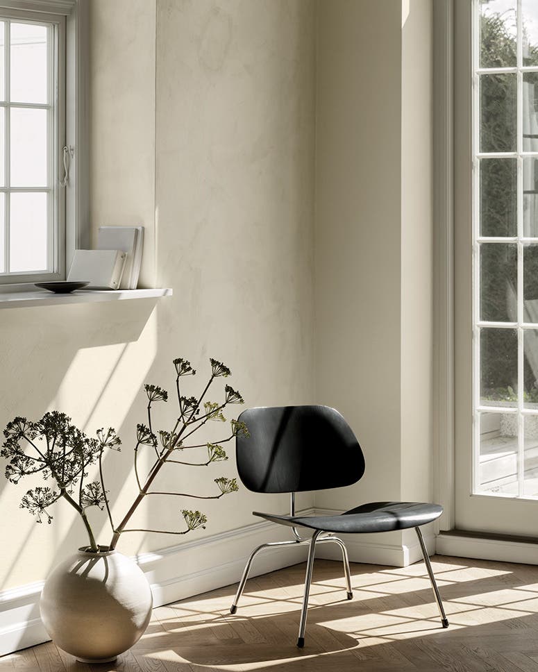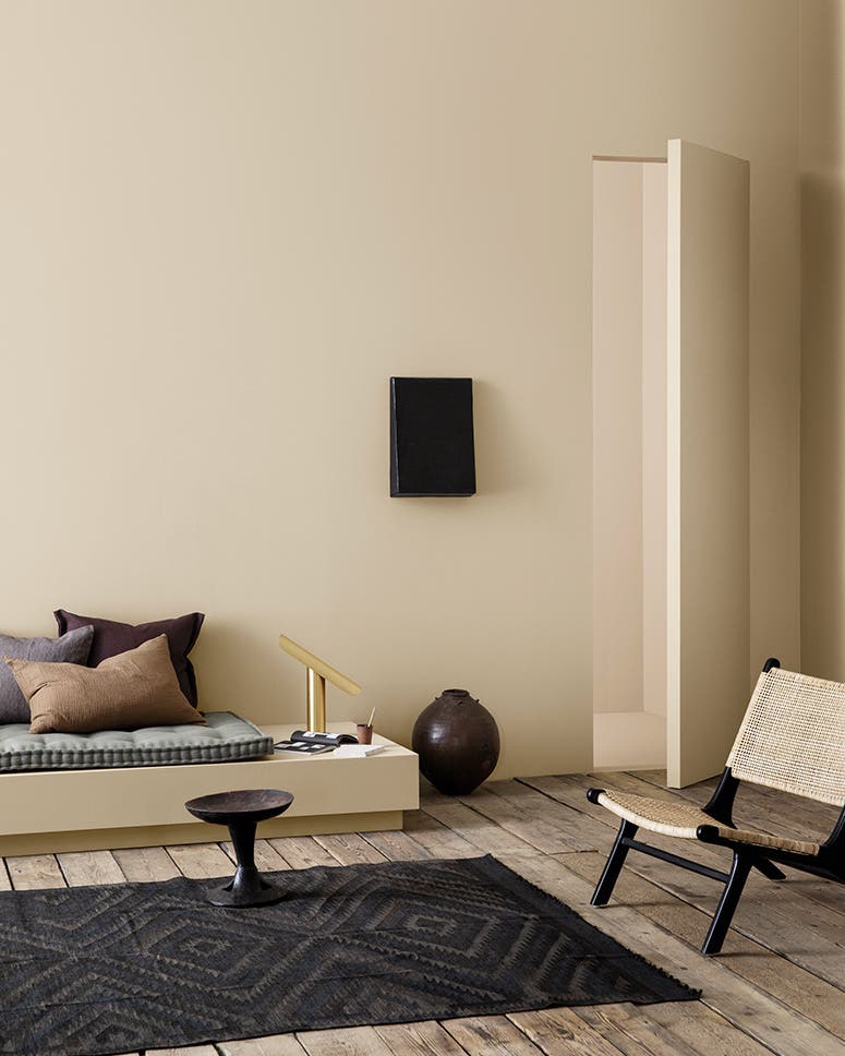 Jotun LADY Minerals Soothing beige, 12075 (vägg) och Klassisk vit, 9918 (lister)